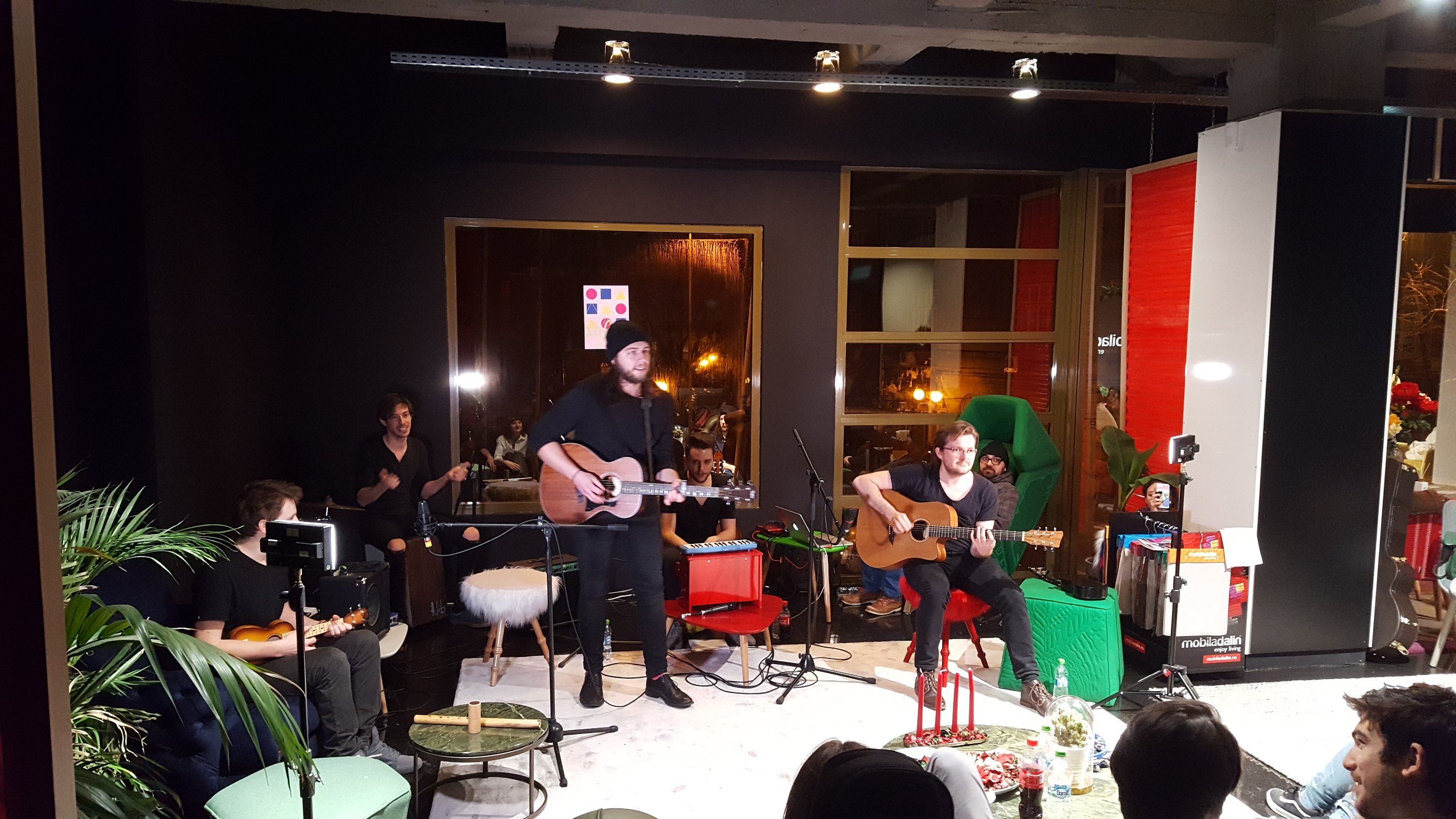 Primul Sofar de anul ăsta s-a întâmplat într-un showroom de canapele de pe lângă grădina Cișmigiu. Ușchită idee, nu? Știu că au idei interesante cei din echipa de organizare. Un spațiu cu multe posibilități de a sta pe undeva, dar nu neapărat cu fața spre artiștii de pe scena improvizată într-un colț. Vreo 60 de invitati și muzica începe…