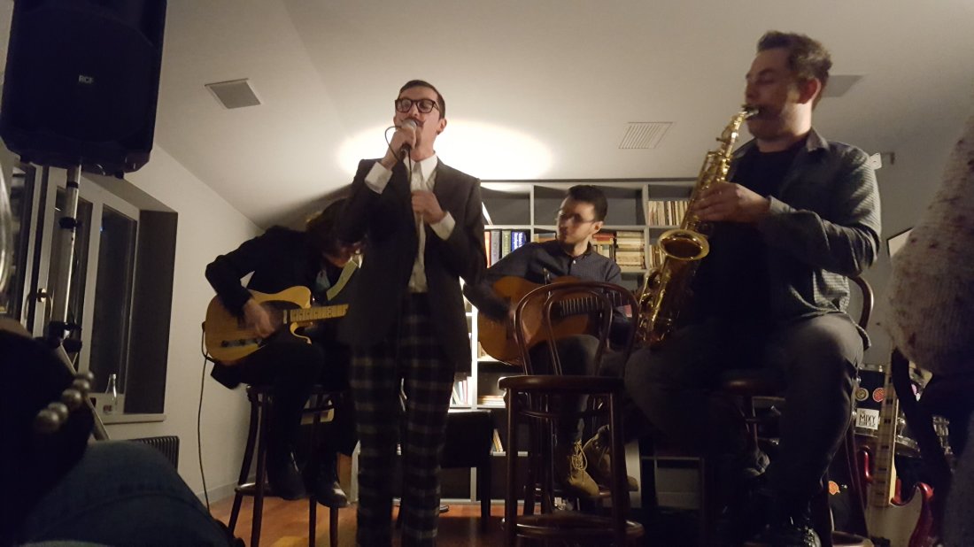 Nu mai văzusem Just Another Lie de vreo 5 ani din Vamă, cred, da’ nu-s sigur :). D’aia am ținut neapărat să ies pe frig și zăpadă să-i văd. Și locul în care au cântat e nou pentru mine, Bistro Matrioska undeva între Romană și Victoriei. La ușă m-a întâmpinat motanul Santiago, un gigant simpatic și blanos. Deci am intrat zâmbind și am păstrat zâmbetul. Un bistro cozy, cu o mansardă plină și, undeva în spate, lângă un pian – cum l-or fi bagat acolo!? – și o bibliotecă era amenajată scena ad-hoc. Cre’ că au fost vreo 60 de persoane pe la mese, în picioare și pe scari. Ar fi intrat mai mulți dacă n-ar fi fost mesele, dar acolo se mai și mânâncă așa că….