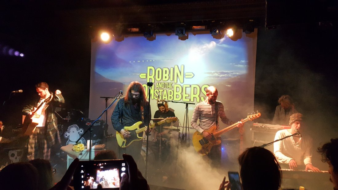La ora 8 fix a început. Punctuali că, deh, spectatorii trebuiau să ajungă pe la joburi :). Intro la clape și voce cu Oigăn, Open House cred. Ca un ceas deșteptător care te ia ușor și nu-ți vine să dai snooze. Tiptil apar și restul pe scenă și se face o trecere spre Marele Zgomot. Sunt toți în pijamale și halate de noapte, dar împrăștie o energie tipică unei după-amiezi de primăvară călduroasă. Și energia se tot plimba prin sală, piesă după piesă, Sat dupa sat ,și trezește pe fiecare în parte, și pregătește de o nouă săptămână pe fiecare. Cum ar fi să te trezești așa în fiecare zi!?