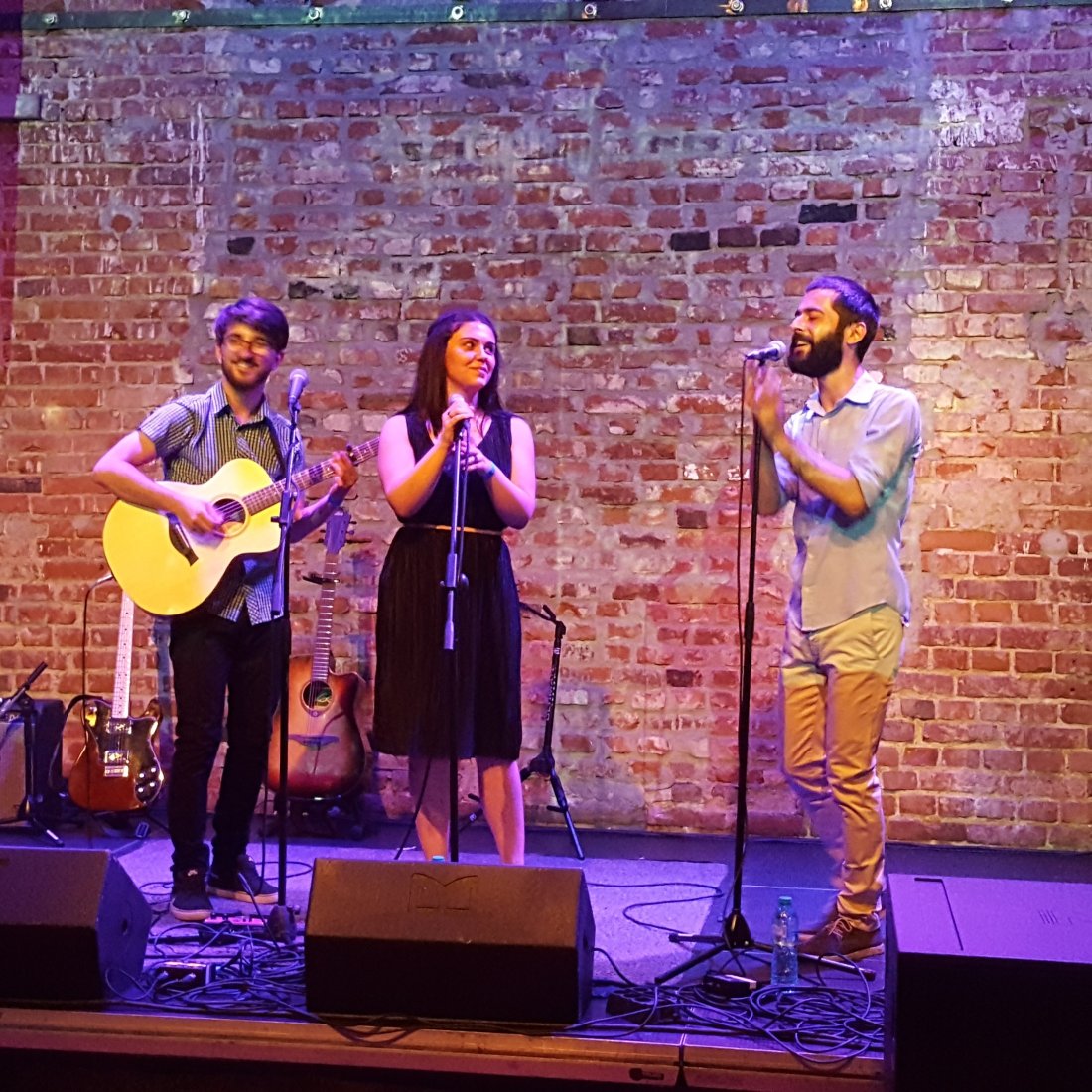 Pauză și … Shine, intră Alexu cu prima piesă de pe EP. Gigg-ul lui n-a fost doar al lui. A fost o co-muziceală ;). Piese d-ale lui mai vechi, piese de pe EP-ul proaspăt lansat, coveruri, cântate singur el cu vocile lui sau cu vocile prietenilor lui, Ana Coman, Paul Manolescu, Meercha ( venit în fuga de la giggul lui propriu de la M60 spațiul) sau chitara lui Bogdan Ioniță. N-ai cum să nu-l placi. Pe cât e de liniștit și cuminte în afara scenei, pe atât de fiară e pe scenă ;). Te trage acolo și, daca nu reușesțe, o ia la fuga prin public. Pentru prima oară am avut și un trio cu el, Ana și Paul reinterpretând Hei de la Eyedrops. Faină joacă!