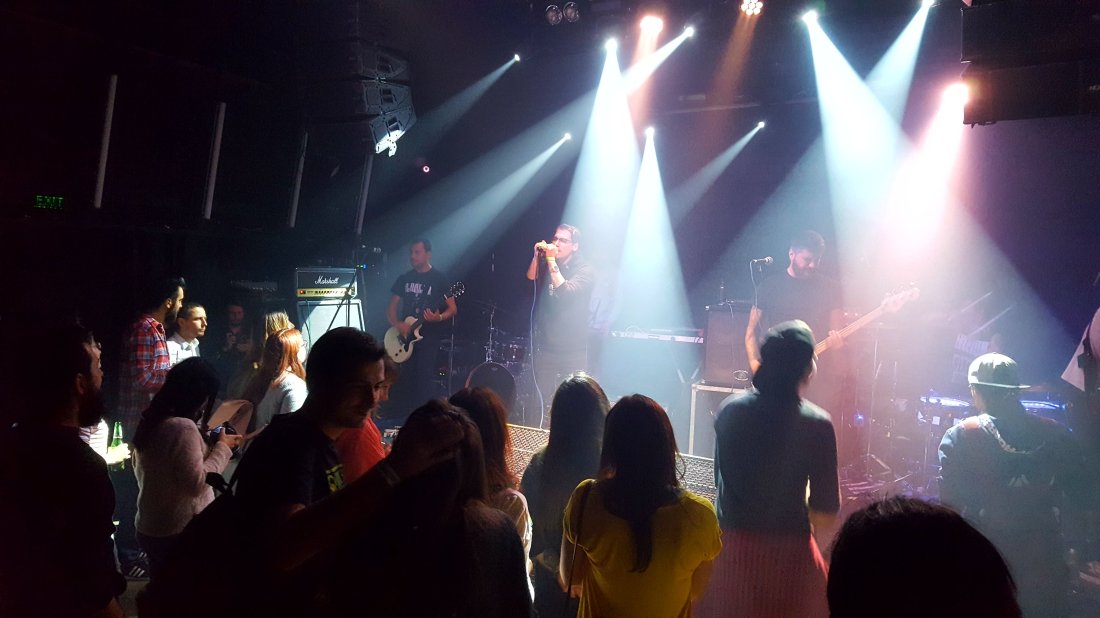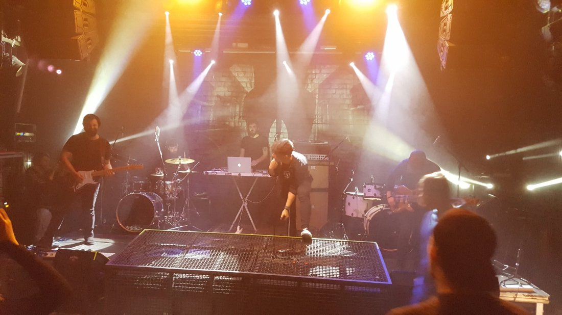 A fost rândul trupei E.M.I.L. să înceapă seara. Cu doar vreo 30 de oameni în sală, cu deja binecunoscuta întârziere și cu toate eforturile organizatorilor. Se pare că e mult de muncă la schimbarea obiceiului :). Da’ nici trupeții de la E.M.I.L. nu s-au lăsat intimidați de asta și au început în forță pe o scenă supra-aglomerată de instrumente din cauza configurației tobarilor, unul de stânga, alții de dreapta :). Plus Vlad Staricu cu piciorul în ghips, dar cu vocea la el.