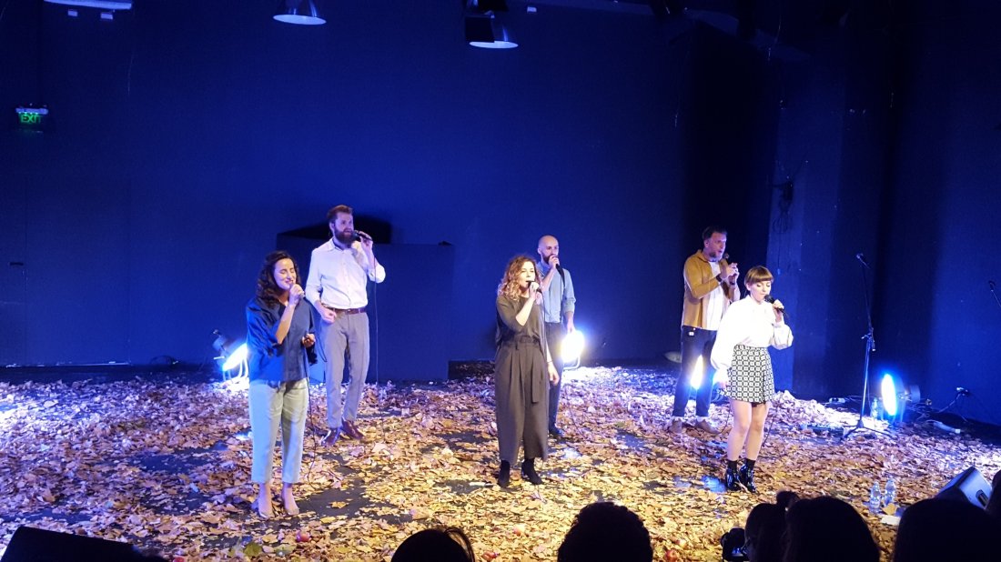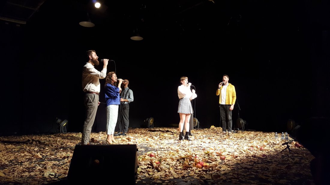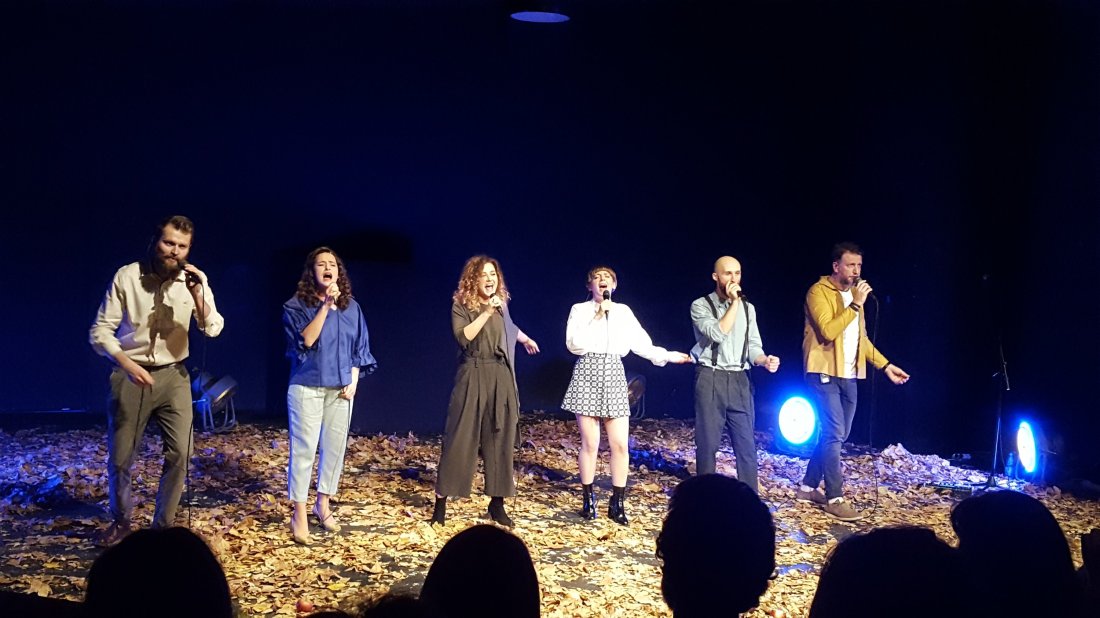Miros de frunze uscate, ca de pădure toamna, în sala de la Apollo111 Teatrul. Așa arăta scena pregătită pentru concertul de lansare al albumului Blue Noise. Foșnetul din sală s-a oprit (parțial, că pe copii nu-i poate opri nimic :)). Apoi s-a mutat pe scenă. Ştiu că pe ei îi scotea din concentrare, dar în sală s-a auzit tare bine. Pentru a cappella ai nevoie de concentrare în plus.