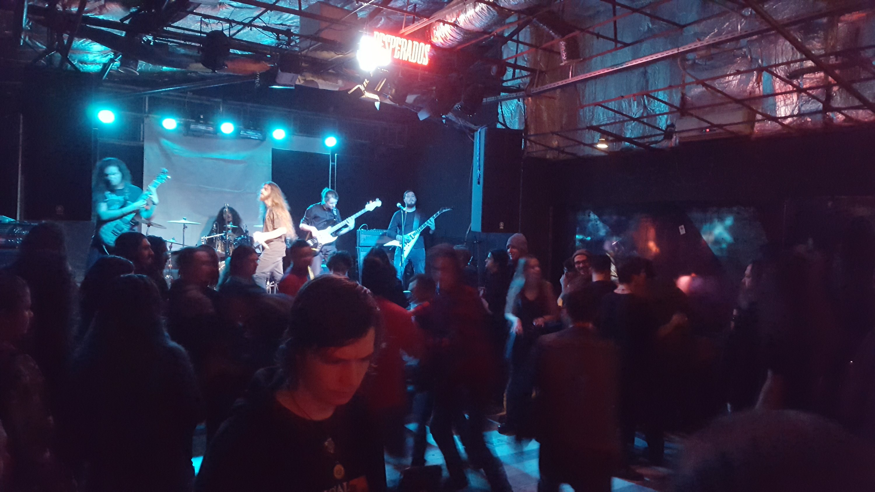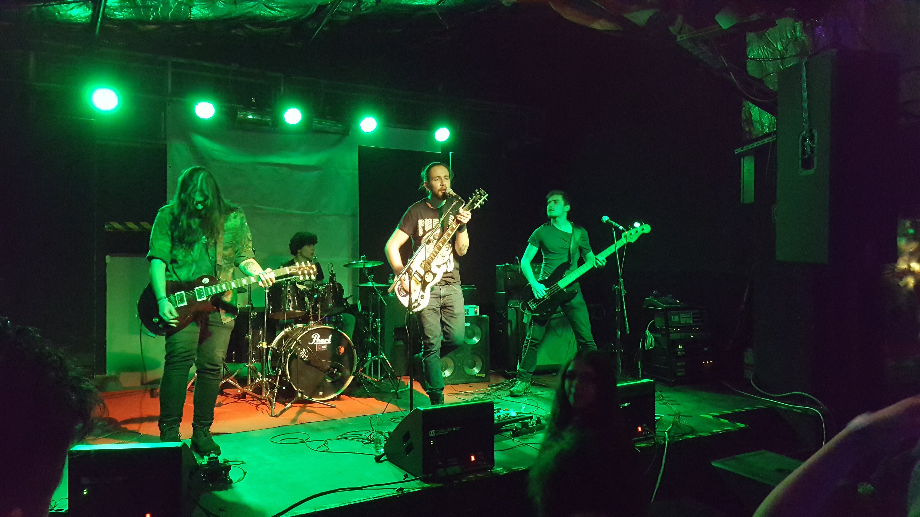 Seara a început deci pentru mine cu craiovenii de la Purple Caravan. Stoner rock cu atitudine. Pe ei îi mai avusem în sacoșa cu prospături, nu-mi erau chiar străini, dar live-ul aduce întotdeauna clarificări despre valoarea unei trupe. Un mare contrast între vârsta trupetilor și calitatea muzicală. Un vocal cu engleză perfectă și voce care duce. Cred că putea să și fugă pe scenă :). A reușit să tragă publicul lângă el deși nu erau localnici. O trupă care merită scene mai mari pe 2019! De menționat și merch-ul lor cu design interesant; dealtfel toate trupele au avut câte ceva de pus pe taraba cu merch.