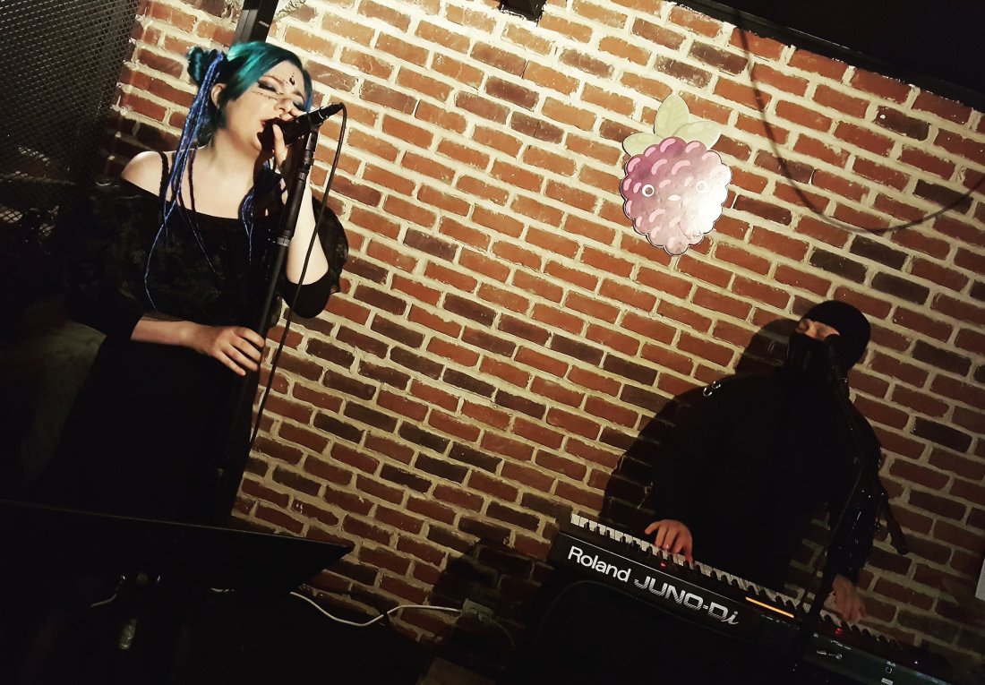 Într-o țară care-l are ca principal produs de export pe Dracula te-ai aștepta ca stilurile goth, cu toate ramurile sale, să aibă mai multă aderență la public, dar neah, o mână de fani la concert. Protagonoștii, un el și o ea, Mandy și Dragoș, și-au respectat blazonul ca apariție fiind în acord cu dark synth wave-ul prestat. Machiaj, coafură, piele și bocanci asortați la ea, iar el cu un combinezon neagru cu o mască franjurită pe față. Buuun. Dedicați. Gigul lor a fost în jurul unor sample-uri pre-înregistrate, cu partituri de orgă și vocea ei pe înalte, soprana like și a lui în plan secund să zicem pe tonalități joase şi dark metal screamo cumva.