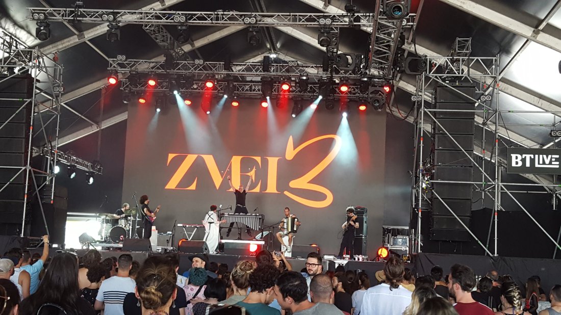 LA Zmei3 am ajuns pe Intro. Lumea era încă răsfirată și oarecum neatentă la artiști. Asta până și-a făcut apariția – chiar a fost o albă aparitie- Paula all white de Transilvania :). Vocea ei a intrat pe Pe când nu te iubeam (aici). Rough Romanian Soul psihedelico-instrumentalo-balcanicul lor s-a împrăștiat în tot Hangarul. Peste 1000 de oameni, mai mult ca la orice sold out de-al lor din București, au dansat pe Ach, Vreau un bărbat sau Rică din Obor. Apropos, mai cântă vreodata Zmei3 la Electric Castle :)? Am observat că Iliescu e mult mai cuminte decât în versiunea Aida și Noi, dar compensează Oli la capitolul ăsta. A cântat la vibrafon din toate părțile și pe față și pe dos plus celebrele dueluri cu bulgarul de la acordeon. Acest Bonobo balcanic a încântat :)!