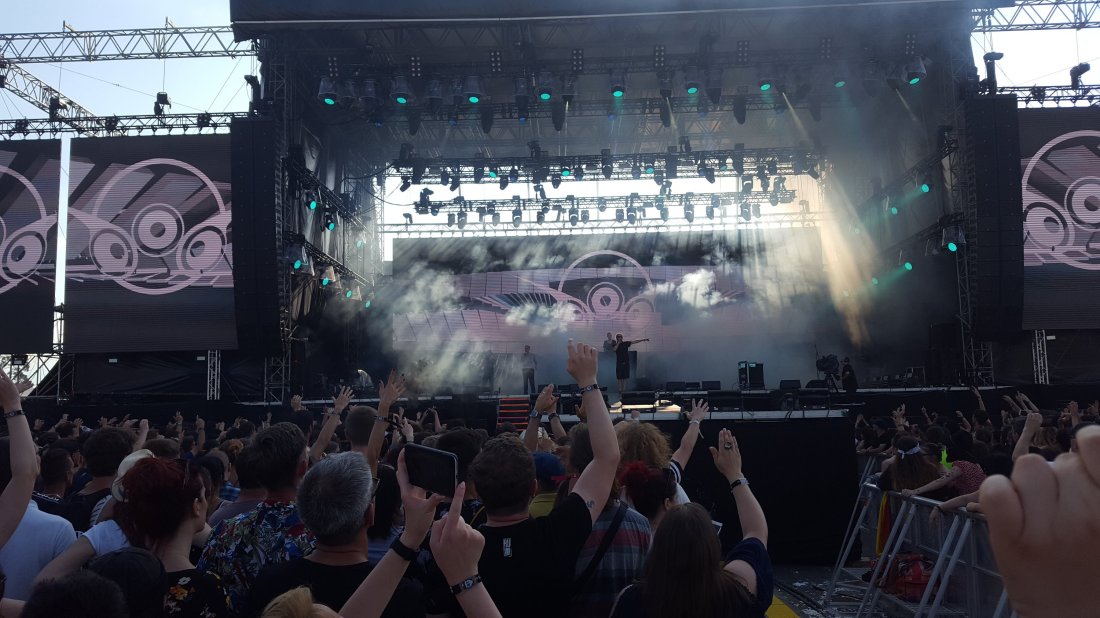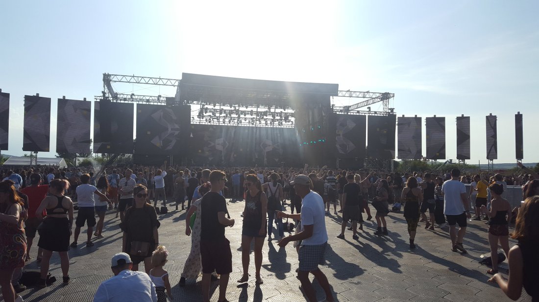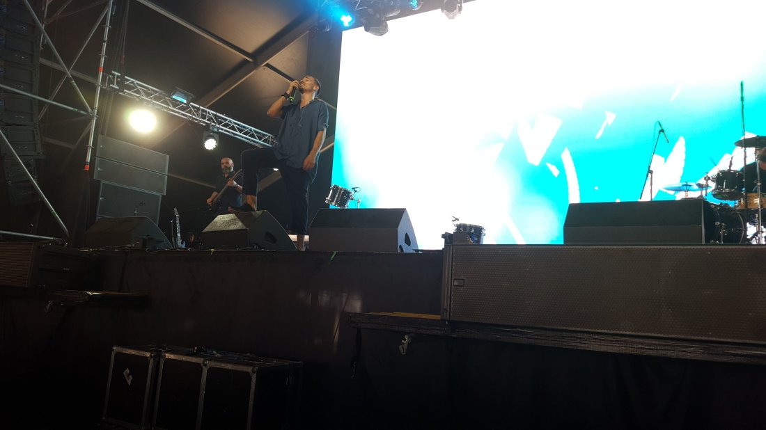 Pe la jumatea gigului am luat drumul Mainului spre Șuie. Dura vreo 5 minute drumul :). Acolo am găsit ceva public. Jumate înghesuiți sub bruma de umbră de la ora aia, cealaltă jumătate înfruntând cu dans vipia soarelui. Numa’ talibani, numa’ fani hardcore. Și playlistul lor a fost adaptat cumva pentru ei (vezi). Cât am fost eu n-am prins nicio piesă de pe noul album. E ok așa. Te adaptezi la moment. Fain a fost momentul bisului. Neprevăzut, neașteptat Doar la ei și la Nils am prins bisuri. Pentru că 25 de ani, pentru că de la stânga la dreapta, din față până-n spate ;).