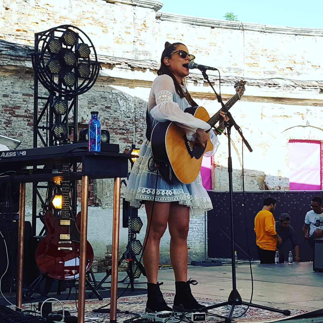 Dilemă apoi. Marú la Courtyard sau Șuie la Main? Am luat-o spre castel la Marú. Moment în care trebuie să remarc că la ediția a fost plin de voci românești feminine de super calitate: Ana Coman, Valeria Stoica, Paula Țurcaș, Marú , Teodora Retegan (Zimbru). Viitor de aur scena noastră are ;)! One girl band a fost pentru a doua oară consecutiv la Electric Castle. Tot emoționată. Eu cred că ea nu poate alfel. Asta este transa ei de livrat muzică. Dar starea asta se asortează foarte bine cu piesele ei. A dat un Turning tables în versiune acustică la care am cântat cot la cot cu colegele din public :). Un cover Nirvana Heart Shaped Box foarte personal. Ca toate piesele ei care au în spate o poveste.