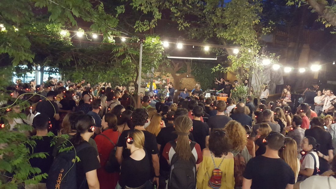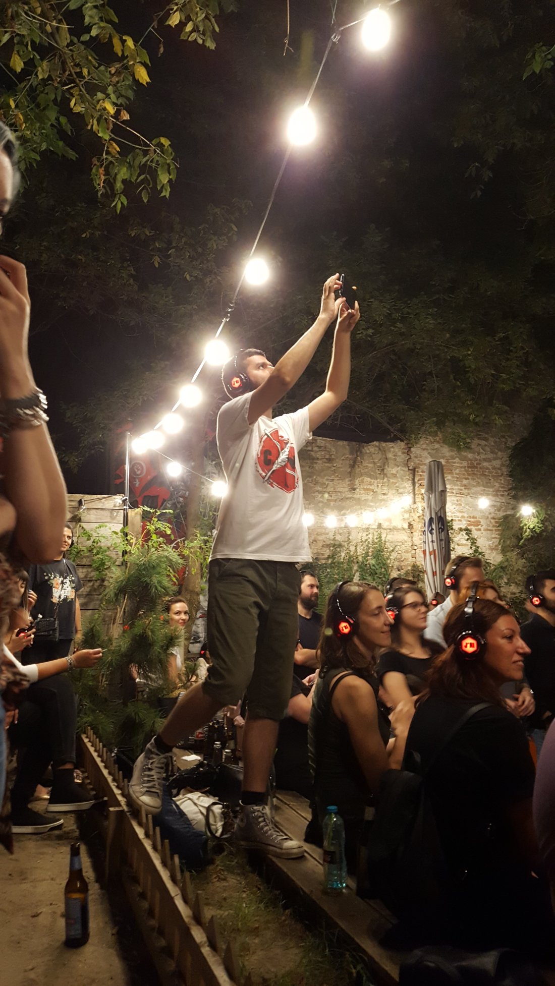 S-a dat drumul la sesiunea de concerte silent în grădina J’ai Bistrot. Silent pentru că toată lumea primește căști la intrare și p’acolo vine muzica. Chestie relativ nouă pe la noi, doar Eyedrops și ceva party-uri știu eu. Dar e singura soluție de a băga live niște concerte la ore decente prin grădinile ascunse din centrul orașului. Deci, salut demersul. Big up, Munteanu că tot promovezi genul ăsta de live-uri!