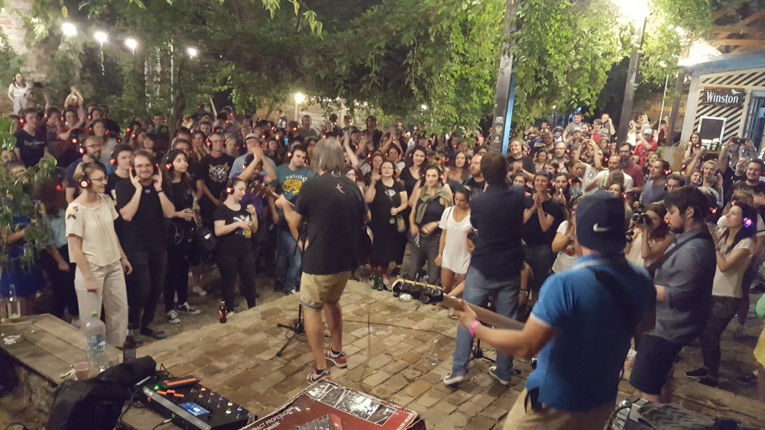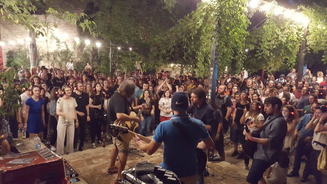 Mi-a plăcut mult senzația de a sta in between, adică doar cu o juma’ de cască pe ureche, în rest vroiam să savurez reacția publicului, de acolo de unde vine emoția unui concert live. Avantajele sistemului sunt evidente: poți oriunde, la orice oră să dai în ele, poți veni cu copilu’, cine nu vrea muzică dă jos căștile și-și vede de vorbit. Sunt și ceva neajunsuri legate de conectarea colectivă specifică live-ului și se mai întrerupe semnalul din când în când la căști.
