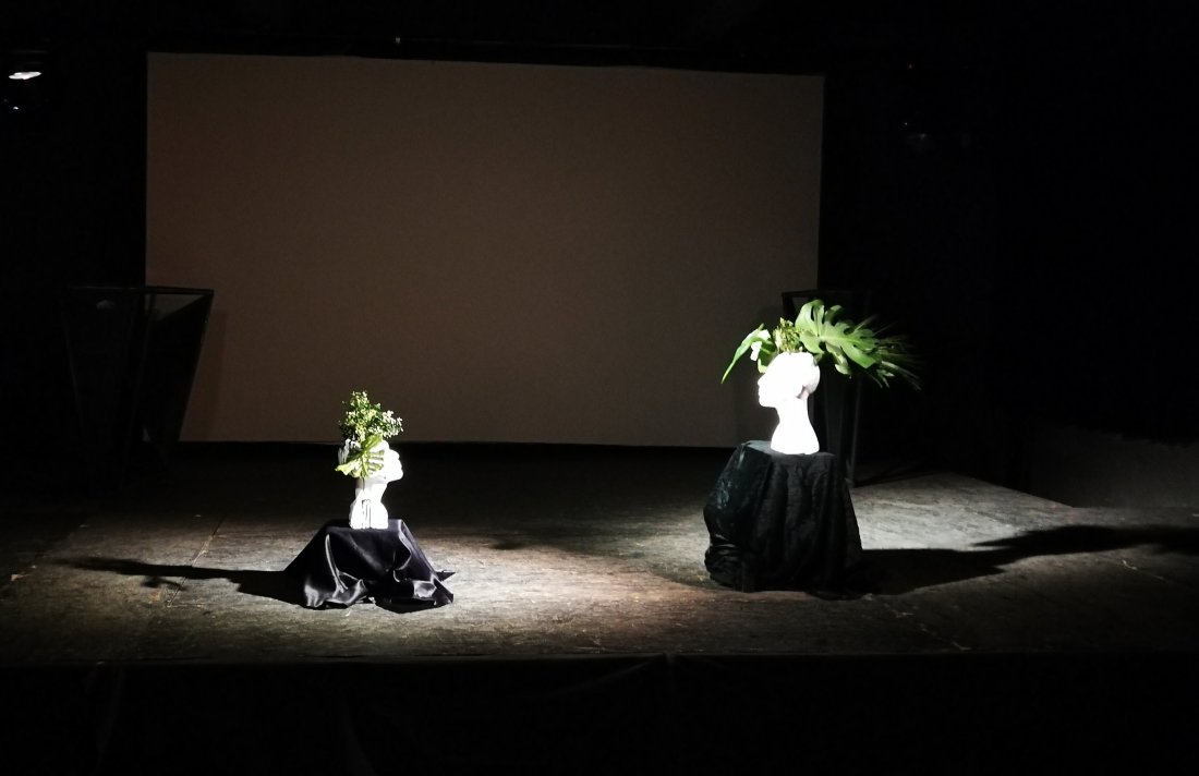 A doua instalație s-a aflat pe scenă și s-a intitulat: Verde crud și Verde plastic. Artistul, Raicelai, se întreabă dacă evoluția este bună sau spre ce ne îndreptăm? Artistul vrea să atragă atenția asupra faptului că omul în vânătoarea constantă de confort uită de natură și de responsabilitățile față de ea. Instalația este una ce combină două capete de manechin (l.e: lut, nu plastic cum am crezut eu 😊) îndreptate unul spre altul. Din fiecare cap iese câte o plantă (verde crud) ce străpunge craniul, spărgându-l.
