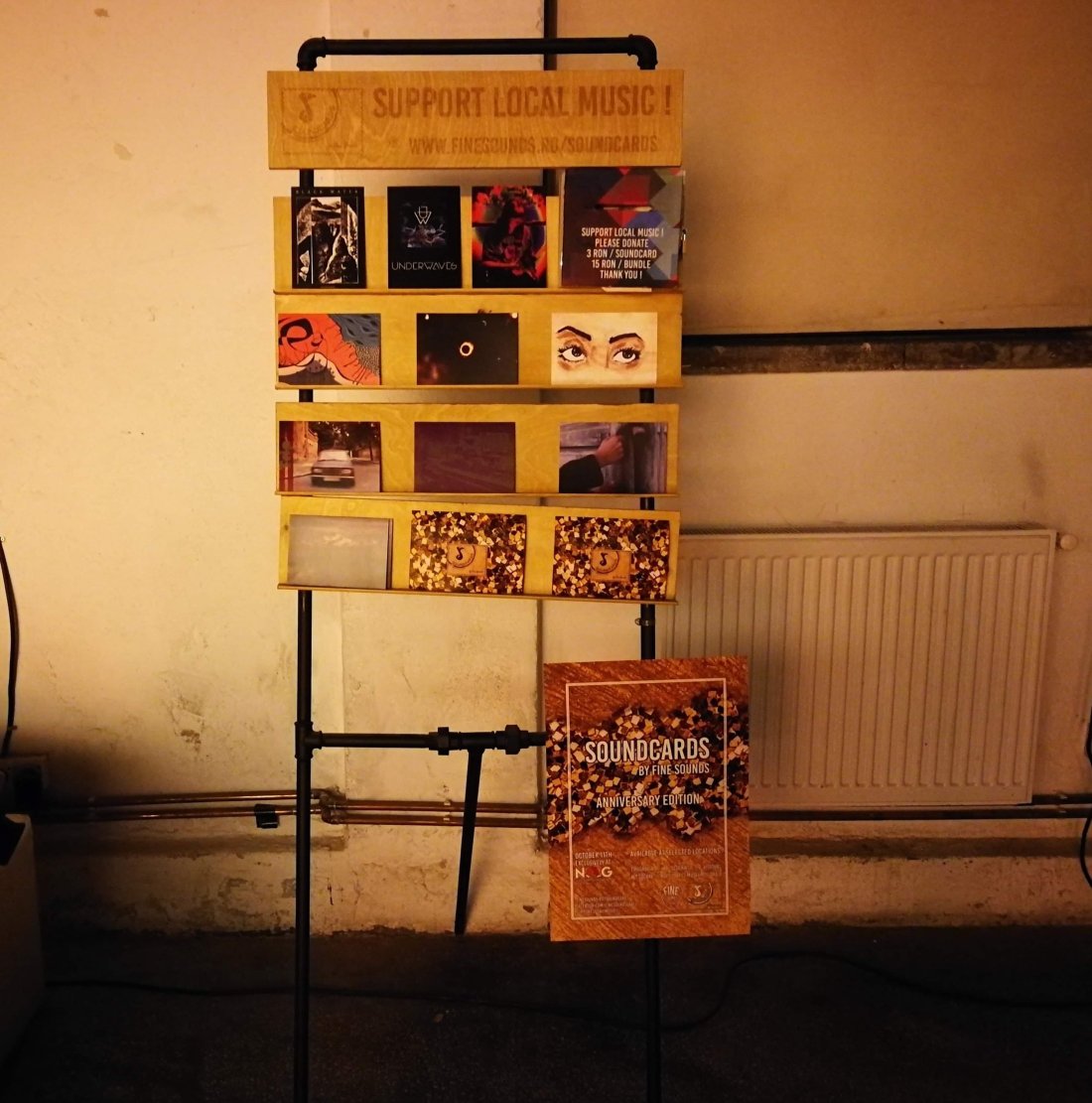 Fine Sounds și-au adus colecția aniversară de un an de Soundcard-uri. Soundcards este un proiect prin care cei de la Fine Sounds promoveaza artiștii locali. Un Soundcard este defapt o carte poștală cu artwork-ul unui artist vizual și un QR-code care odată scanat ne duce direct la profilul piesei (muzicale) pe http://www.finesounds.ro. Artiștii se pot ralia inițiativei accesând site-ul și completând fișa de înscriere. La NAG, Fine Sounds a adus o selecție de 12 pack-uri cu soundcards lansate pe parcursul ultimelor 12 luni. Într-un an Fine Sounds au lansat 78 de modele de cărți poștale, cu 78 de piese de la 37 de muzicieni și 36 de artiști vizuali în 11 ediții (bundle-uri).