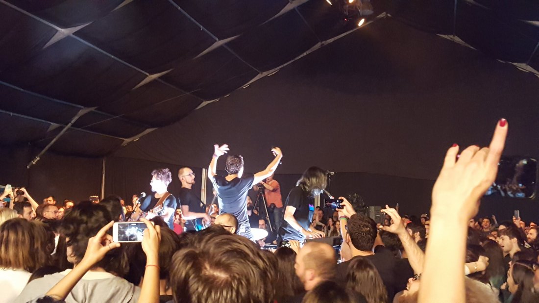 Cortul acoperit și supra-încălzit – aveam tricoul ud la final – s-a umplut de fani. Da, publicul a fost cum bănuiam eu, 30+, ieșitori la concerte ocazie și foarte cunoscători de versuri ;). M-am fâțâit ceva, cum îmi e felul, și mi-am verificat teoria că albumul ăsta nu va aduce fani din generația foarte tânără, dar îi va lega și mai strâns pe cei vechi. Deschiderea a fost asigurată de Lucia & band și The Mono Jacks care ne-au dat vestea minunată că urmează ei, cu album nou, în februarie 2020. Semne bune anu’ are ;)!