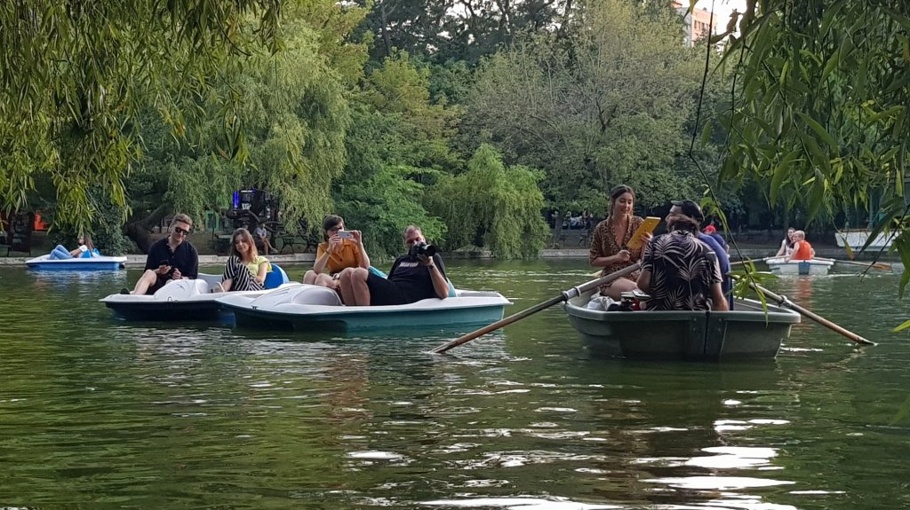 Nu, nu e o recenzie la romanul lui Jerome K. Jerome cu același nume, dar tot despre un fel de evadare este vorba. Cea a trupei We Singing Colors care a ales să evadeze din constrângerile concertistice actuale și să găsească un mod de a cânta, de a ajunge și fizic la fanii lor, dar și la public nou. Practic, și-au inventat contextul. Toată zona artistică și mai ales undergroundul trece printr-o perioadă de a fi sau de a nu mai fi așa că orice idee merită încercată. E chiar de apreciat orice gândire out of the box. Așa bănuiesc că le-a venit și lor ideea de a cânta dintr-o barcă pe lacul din Grădina Cișmigiu. Acustic, evident, și fără microfoane. Toate regulile de distanțare fizică au fost implicit respectate pentru că într-o barcă nu pot fi mai mult de trei persoane. Ploaia i-a încurcat vineri, dar duminică le-a iesit planul.