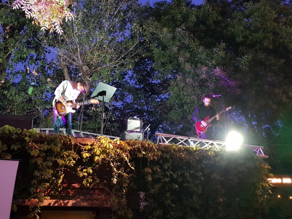 Izolați în Sala mare, la cele două ferestre care dau spre terasă, erau tobele lui George și locul bassului Adi, care a cântat practic în genunchi, pe pervaz, de parcă-l trăgea muzica afară la noi 😊. În setupul ăsta și cu o terasă care ar fi meritat să fie mai plină au început aparent timid după felul și portul lui Armand cu câteva cuvinte de bun venit. Când au început să cânte a fost cu totul altceva…