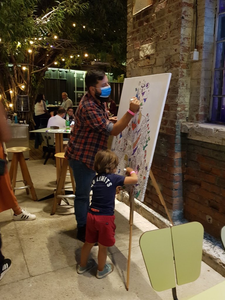 Trupa all black și-a așteptat oaspeții cu o surpriză, un exercițiu de artă colaborativă reprezentat de art-work-ul din clip, ce își aștepta umplerea de culoare și idei după bunul plac și gust al spectatorilor, chiar de la intrare. Și lumea s-a pus pe treabă serios.