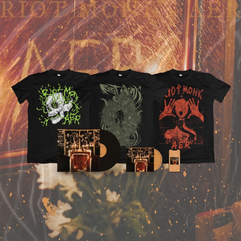 - Contribui cu 50 RON și vei primi unul dintre cele trei modele de tricouri unisex la alegere (modelele DRIPPING SKULL de Mara Conopan de la CREEPS.ro, GETO DRACII de Mihai Mănescu de la Obsidian Nibs și COSMIC SCREAM de Diana Cumpăratu de la Dawn DD’s Art), mărimi de la S la XL, printate pe tricouri Gildan Heavy Cotton, albumul „AER” în format digital pe data de întâi Noiembrie, înainte de lansarea oficială, un pachet de stickere Riot Monk create de Mara Conopan de la CREEPS.ro, și vei fi trecut în booklet și insert la secțiunea mulțumiri speciale.