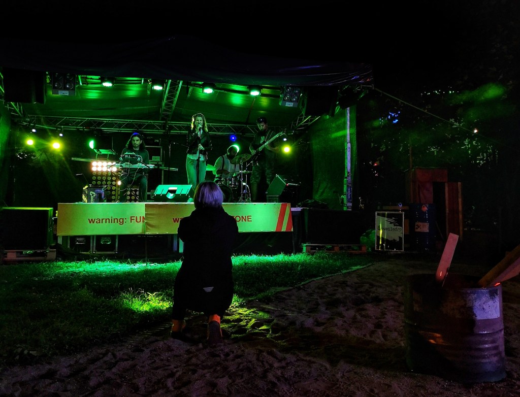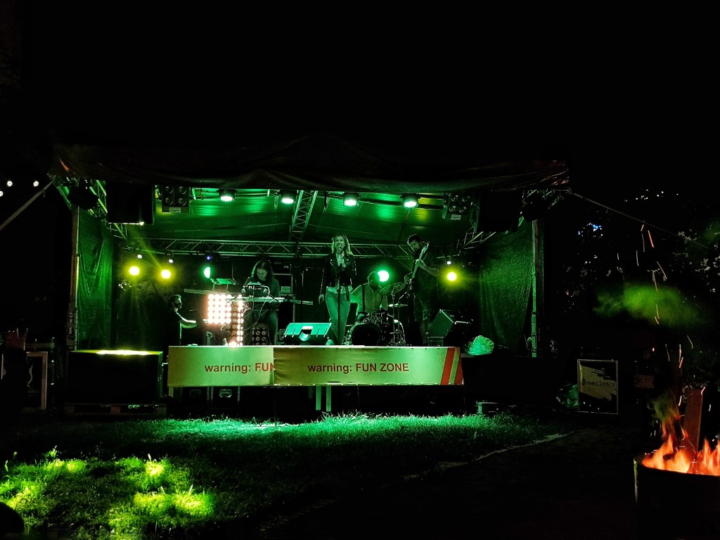 La soundcheck ne-am mutat mai aproape de scenă, unde am găsit două butoaie în care ardeau niște lemne, pentru o atmosferă mai cozy și de tabără, cumva. Setupul s-a dovedit super folositor, întrucât nu mult mai târziu s-a cam lăsat frigul, așa că un pic de căldură de la foc nu a stricat deloc. Nu știu cât de confortabil a fost pentru artiști, însă, că probabil știți și voi că atunci când faci un foc și vrei să te ferești de fum, aproape negreșit va veni fix spre tine. Și dacă trebuie să inspiri adânc, ca să poți cânta… nu știu ce să zic.