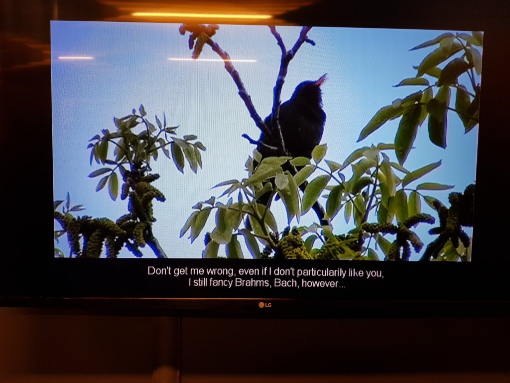 Mitoș Micleușanu cu mierla lui tupeistă și vorbind limba oamenilor. Ar fi trebuit să vă las un video, dar mai bine mergeți s-o vedeți.