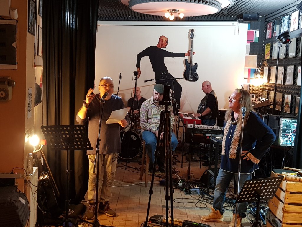 Pe rând. Talentele. Mike Godoroja & Blue Spirit este trupa de blues, jazz, rock care are deja 20 și ceva de ani în zona asta. Vocea lui Mike e asociată radiofonic cu melanjul blues-jazz-rock încă din anii ’90 când, alături de Florian Lungu, propovăduia radiofonic stilurile astea pe meleagurile noastre. Conjunctura a făcut ca eu să nu-i văd niciodată live. Pentru că nepotrivire, penru că alte interese, pentru că. Pierderea mea. Oamenii ăștia sunt un organism care respiră muzică și, cât am stat să-i văd, cu mască și doar pentru câteva piese, m-au făcut să cred că unii au divinul în ei când cântă. Sigur, talentul și experiența au un cuvânt important de spus, dar când ai ocazia să vezi cum la o mișcare aproape nevăzută de deget de-a lui Mike trupa schimbă ritmul te ia cu furnicături. Și nu la vreun refren ci după o pleiadă de incantații și improvizații instrumentale pe blues sau după vreun dialog voce – muzicuță. Toată experiența serii a fost însăilată ca un fil rouge pe poeziile lui Nichita Stănescu, unele total necunoscute mie, puse-n scenă de Eugen Cristea. Actorul Eugen Cristea, pe care unii-l știți doar din Feriți-vă de măgăruș din păcate, a avut inspirația și talentul de a-l învia pe Nichita pentru o oră în fața ochilor mei. Recita și privea tavanul de parcă-i sufla poetul versurile de sus. Mucalit, dramatic și dulce-obraznic s-a luat la dans și trântă cu trupa făcându-mă să regret că nu l-am văzut mai des în ipostaza asta. A și cântat la chitară pe una din piese la invitația lui Mike, ba au și dansat la un moment dat. Mă simt onorat că am respirat același aer cu ei pentru o perioadă chiar dacă pe vremuri d-astea sună ciudat.
