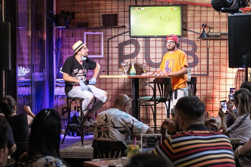 A.N: Câteodată mai mult, câteodată mai puțin. Variază pentru că așa suntem noi. Cine ne vede acasă, ne vede cam la fel. Nu știu dacă pe Ștefan îl descrie neapărat “profilul realist”, în final fiecare dintre noi joacă mult mai realist sau mai nebun decât este în viață reală. E umblat la potențiometru, dar la baza cam ăștia suntem. Eu am crescut într-o familie de artiști, iar în cazul său mama este profesoară de matematică, iar tatăl cadru militar, deci rigorile și educația vorbesc de la sine. Este un băiat cu ținută, nu ca mine… în decădere (când am 80 de kile, când am 60, când mă vopsesc, etc). Ștefan arată așa de când l-am cunoscut, bine… a mai îmbătrânit din 2009, dar e echilibrat. Eu nu mă pot certa cu el așa că singurul lucru pe care o facem este acest spectacol. Cred că în final ceea ce face spectacolul atât de viu este faptul că îl vedem foarte diferit. El vrea ca spectacolul să fie un fel de Magazin Victoria cu de toate, de asta îi mai recomand uneori să lase de la el… deși e sănătos ca micile derapaje să fie amendate.