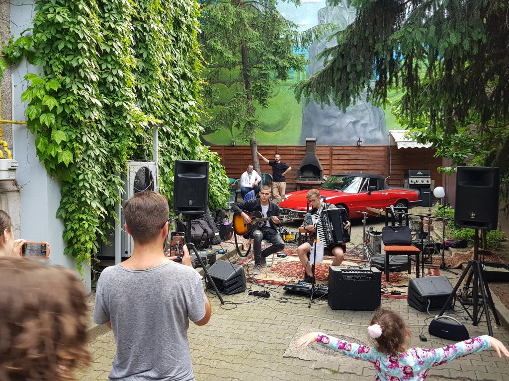 Pauză de sarmale care a pus în impas food truckul și apoi … STEMA. Trupa a apărut într-o formulă nouă. Io i-am prins prima oară acum vreo 4-5 ani pe când Stere mai dădea la tobe pe Himalaya. Oricum, ce s-a auzit pare soundul unei trupe care a repetat ceva timp împreună. Am avut un sunet neșteptat de bun pentru curtea dintre clădiri. Big up la sunetist 😉!