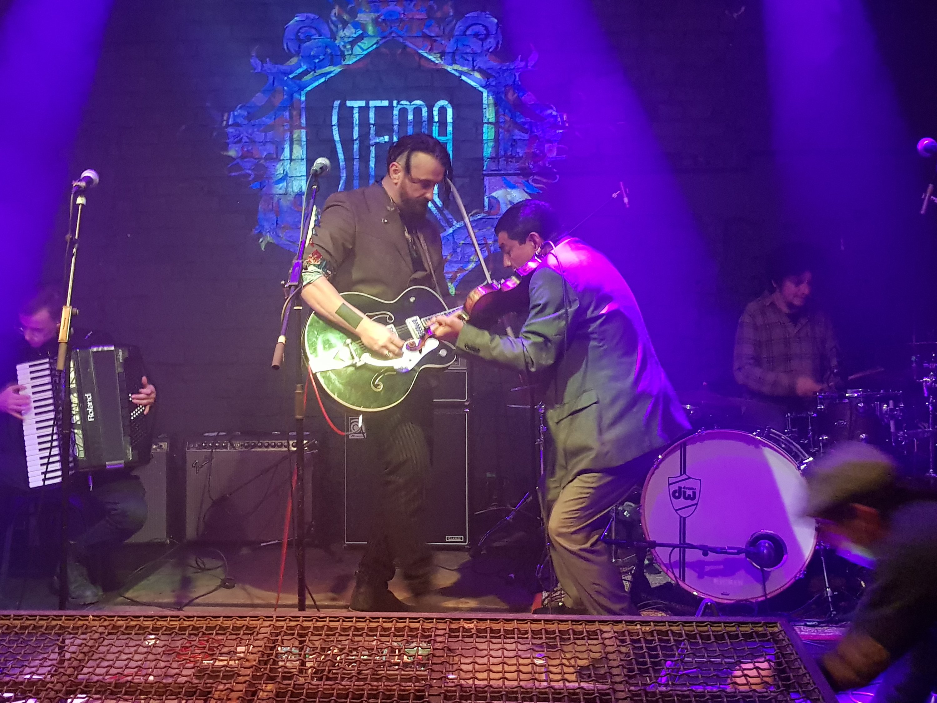 Prima parte a concertului a fost cu STEMA pe care o știm, cu soundul indie rock și dese incursiuni în surf rock, dar și ceva elemente pe ici colo de progresiv, post-rock sau burlesc a la Tiger Lillies. S-a pornit balansu-n public. Ce chestie! Mi-am dat seama că există o serie de mușchi de concert, unii care se resimțeau de la țopăiala haotică și neexersată de atîta timp 😜. S-au scurs piese și de pe primul volum ca Săgeata, Om, Toamna sau Stres (piesă care trebuia să fie cântată cu un invitat, și ce invitat!! Artanu! Dar din motive de sănătate s-a declinat în ultimul moment. Sper să mai prindem minunea asta). Cu piesa Silvia, probabil cea mai grea piesă de cântat pentru Silviu, din motive știute doar de el, s-a terminat prima parte a playlistului.