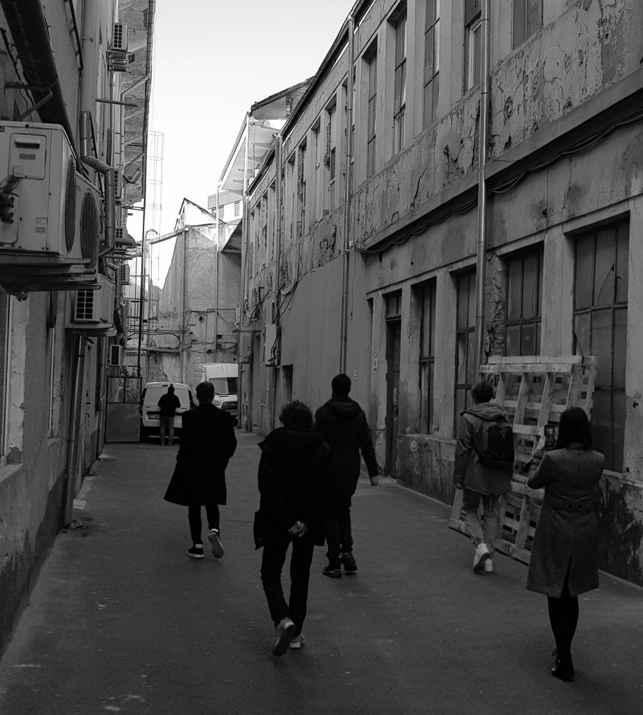 Drumul în microbuz a fost în sine un episod demn de menționat marcat de glumele de autocar de gimnaziu și poveștile printre scaune. Destinația: Flaros, acest complex de clădiri vechi de un secol care adăpostesc de vreo 30 de ani mai toată floarea indie-ului local. Bineînțeles și TMNJ a trecut pe acolo. S-au pregătit cum trebuie și la fiecare oprire erau QR code-uri pe pereți cu linkuri spre bucăți de istorie sonoră.