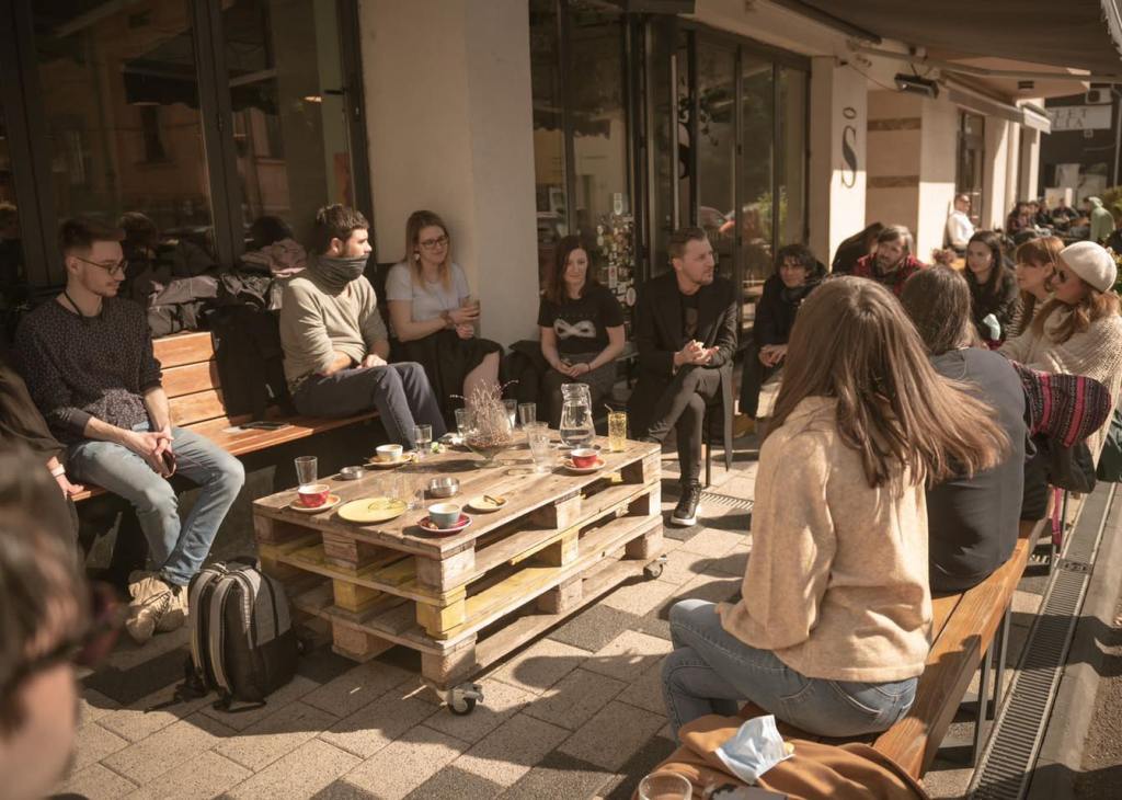 Startul s-a dat la Saint Roastery o cafenea cu suflet de pe Titulescu pe care am descoperit-o cu ocazia asta cu tot cu gazdele primitoare. Grupul se aduna încet. Ne știam de pe la concerte. Fani vechi, oameni de radio, bloggeri. Și io. Nu degeaba a pornit călătoria de acolo. Vă aduceți aminte Caffè sospeso de pe Gloria? Ei, aia e legătura, via Italia și întâmplarea lui Doru de acolo cu una sospeso. E un obicei italienesc vechi, dar care prinde rădăcini pentru că este despre a dărui. Deci vorbe, soare, cafele și apoi plecarea spre al doilea loc de importanță pentru instoria TMNJ.