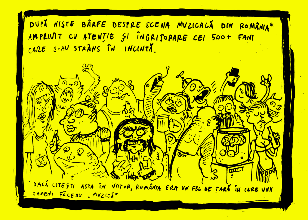 La un moment dat o lumină puternică pe o scenă și toată lumea s-a conectat la fluxul semnului care îi vrăjea. Cred că începea ritualul. Acolo era cineva ca un preot, cu o mască de klingonian și strai strălucitor și un ajutant la chitară plus două preotese care dansau hipnotic. Lumea în transă. Din boxe duduiau în același timp sonorități drăcești amestecate: reggaetoane, techno, rave, punk, manele, disco și alternative rock.