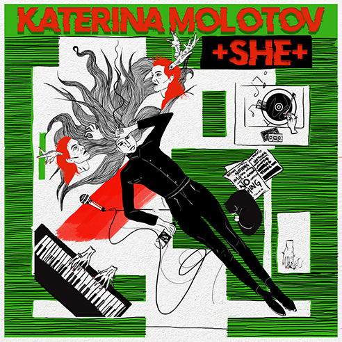 SHE: Îți mulțumesc și mă bucur că este așa! +SHE+ este Ea. Este Katerina Molotov. Prietena mea imaginară de la 5 ani. Partenera cu care am împărțit doi ani din copilărie și pe care ulterior am mai văzut-o de trei ori la maturitate. Poate apărea oricând, iar asta îmi aduce în aceeași măsură bucurie și teamă. Katya este roșcată, are părul foarte lung, pielea transparentă-ivoir și o privire fixă cu doi cărbuni negri solizi și colțuroși. La ultima noastră întâlnire (toamna trecută înainte să compun albumul) avea picioare de păsări în păr. Am citit după că ar simboliza trecerea dintre lumi.