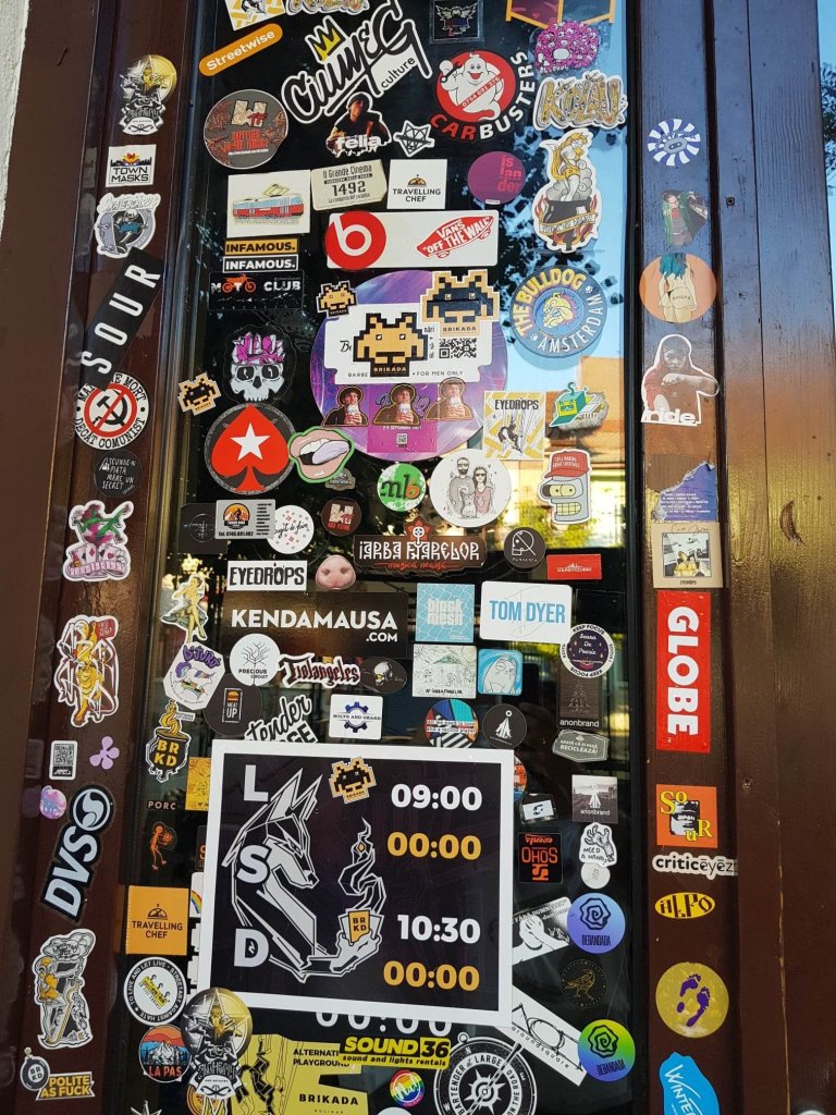 Acum ce mă doare la noi? Sunt din ce în ce mai puține locuri prietenoase cu astfel de manifestări și asta nu face decât să întărâte și să ducă la extreme. După ce că e din ce în ce mai greu și mai scump să-ți promovezi un eveniment online nu mai ai nici tradiționalul mod cu afișe pe unde să-l exerciți. Vai! Se murdăresc vitrinele, se strică pereții, nu coincide cu politica clubului – sâc- … N-ar fi mai simplu și mai în spirijinul fenomenului să pui un perete la dispoziție pentru afișe? Sau o tablă de plută să fie ușor de afișat și primenit? Iar din cele faine să le și păstrezi pentru o istorie a locului? Toaletele pot fi niște zone de advertising excelente cât timp aștepți sau … Fă o zonă de stickere undeva și vei scădea din sticker bombingul aiurea pe unde chiar pot deranja. Intră în fenomen, lasă-te dus de val nu te împotrivi aiurea. Mai bine surfezi decât să te tot pleznească valul peste ceafă.