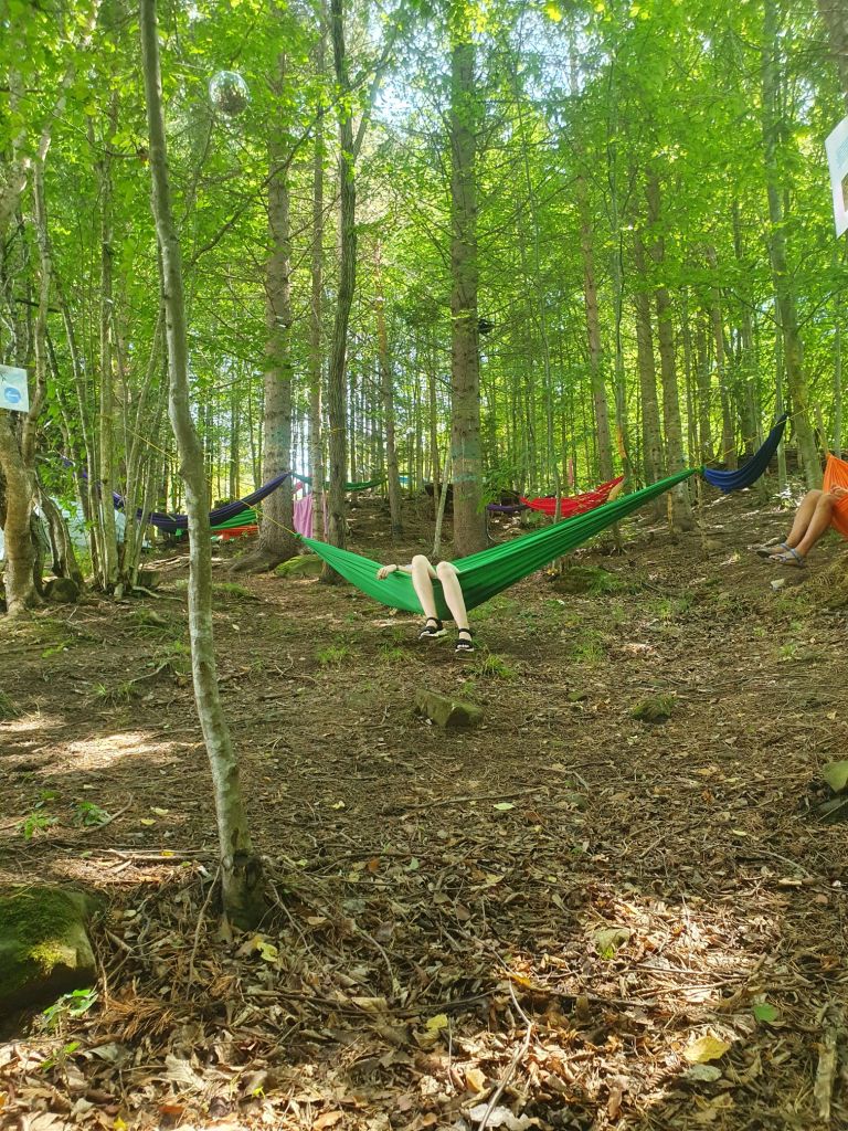 Spre deosebire de festivalurile celebre, prezente pe toate panourile și pe toate gardurile aici NU aveai parte de o intrare triumfală colorată și garnisită cu simboluri mercantile. Nu, intrai direct pe sub un molid mare care te pleznea peste ochi dacă nu erai atent și apoi nimereai direct între glumele voluntarilor de la Info Point legate de prezența au ba a semnalului pentru achiziționarea de bănuți, moneda lor din carton folosită prin festival. Da, asta părea o problemă, dar cumva, dacă erai pe fază când venea semnalul te desurcai. A fost festivalul fără nicio activare de brand și asta spune multe.
