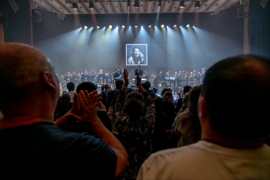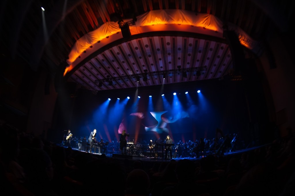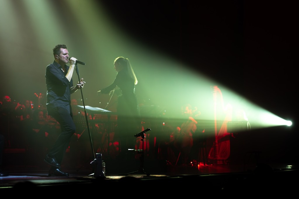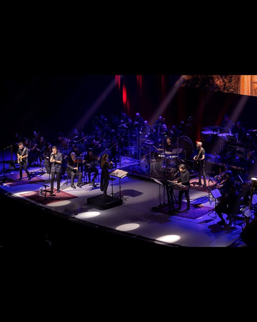 Chiar cu albumul Nouă ascultat înainte de spectacol ca să fiu în temă și tot am avut dificultăți să recunosc unele piese în orchestrarea lor simfonică. Pe alocuri Wagneriene, alteori spre Woodkid sau Muse piesele au prins dimensiuni noi, cam vreo 50 așa după câți membri avea orchestra Filarmonicii din Sibiu dirijată și ținută în ritm de Simona Strungaru. Eu cred că piesele așa au sunat de la început în capul trupei și Dan avea acest vis umed că poate într-o zi le va auzi și ni le va da în forma asta. Și uite că a fost cu o Sala Palatului sold out.