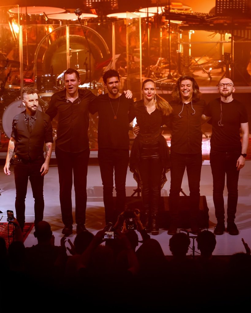 Pornind de la scheletul albumului Nouă (lansat în 2019 despre care mi-am dat cu părerea aici) Dan&co au construit o coloană vertebrală peste timp. Cele trei momente video proiectate pe ecranul din spatele scenei au punctat trecutul, prezentul și viitorul. Matei Vișniec în prolog a ținut un scurt monolog despre libertate, un discurs/recurs la ce a însemnat libertatea la un moment dat în istoria noastră și la fragilitatea ei. Probabil cei peste 40 de ani au rezonat somatizând chiar cele spuse, în timp ce pentru ceilalți a fost o poveste cu a fost odată. Prezentul a fost inserat pe la mijloc de concert prin cina cea de taină a membrilor din trupă care, adunați la o masă, au răspuns la prima gândire la întrebarea „Cum vedeți voi lumea azi?”. Răspunsuri care mai de care mai metaforice pe care tare aș vrea să le mai revăd. Am rezonat cu tangoul lor care ducea pașii spre aceleași idei. Ne este cel mai bine acum, din toate timpurile, din toate posibilele lumi, dar ne este și cel mai rău de departe ce suntem unii de alții. Epilogul a surprins viitorul care, în opinia mea, a lăsat să răzbată doza de optimism a trupeților. Trei copii au venit cu ideile lor despre lume și cum văd ei că ar trebui să fie și a fost plin de lucruri la fel de smart ca ale adulților, doar că mai puțin încrâncenate și mai pline de culoare și miros de biscuiți.